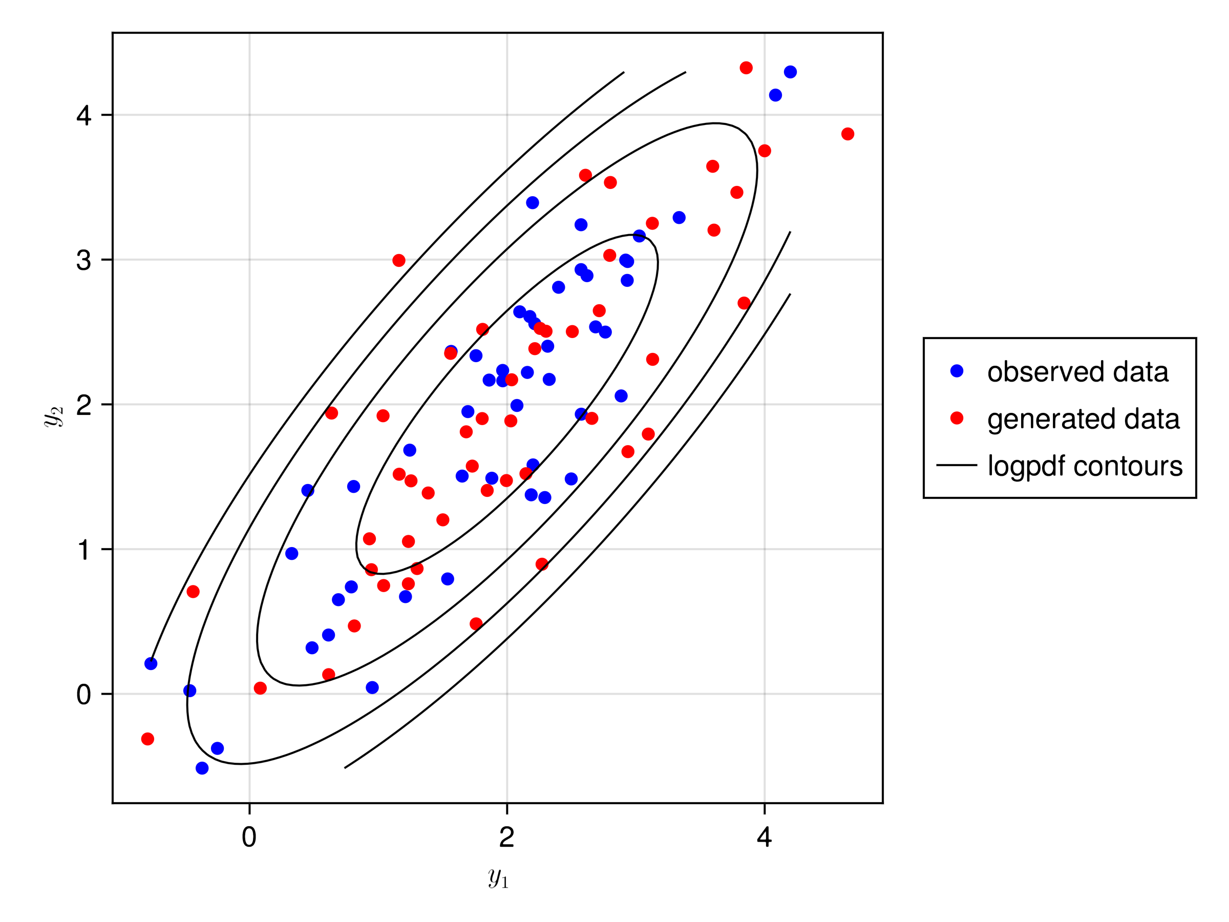 - Observations \(y\) ↔︎ Generated data \(x\)